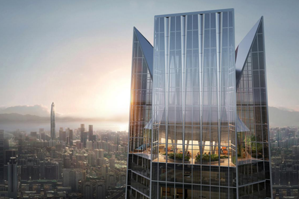 The 388-meter-high Citymark tower in Sungang, Luohu district, was topped off as scheduled on May 31, confirming construction of the future landmark building is nearly complete.