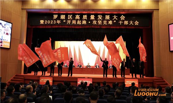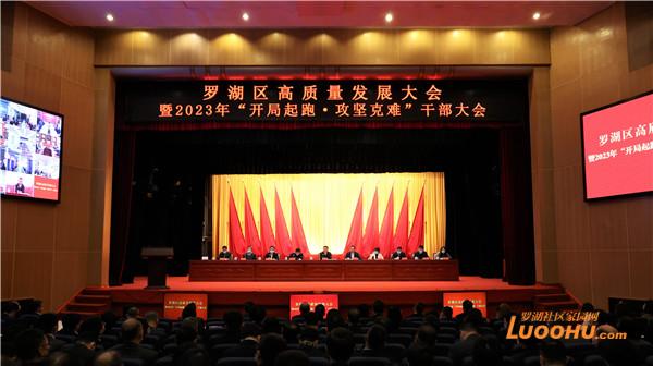 2023年1月30日,為迅速學(xué)習(xí)貫徹省、市高質(zhì)量發(fā)展大會精神,羅湖區(qū)高質(zhì)量發(fā)展大會暨2023年“開局起跑·攻堅克難”干部大會召開,部署2023年羅湖區(qū)十大攻堅克難任務(wù)。強調(diào)全區(qū)上下要立即行動起來,發(fā)揚羅湖人的先鋒精神、奮斗文化,鼓起逢山開路、遇水架橋的攻堅勁頭,集中力量投入到攻堅克難的任務(wù)中去,為高質(zhì)量打造“三力三區(qū)”、建設(shè)社會主義現(xiàn)代化可持續(xù)發(fā)展先鋒城區(qū)作出新的更大貢獻。