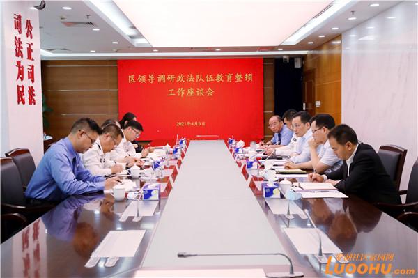 4月6日,羅湖區(qū)委書記羅育德帶隊前往黃貝派出所和羅湖法院、羅湖檢察院調(diào)研區(qū)政法隊伍教育整頓工作情況并召開座談會,對進(jìn)一步做好教育整頓工作進(jìn)行部署。區(qū)領(lǐng)導(dǎo)賴武、于紅軍、李久祥、徐猛參加。