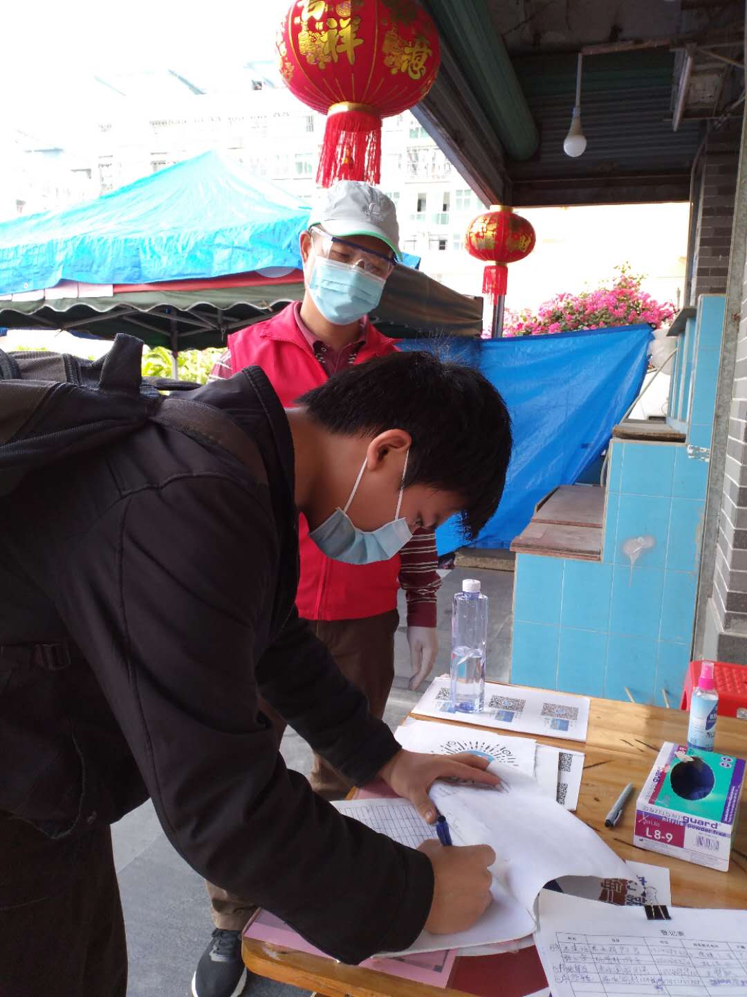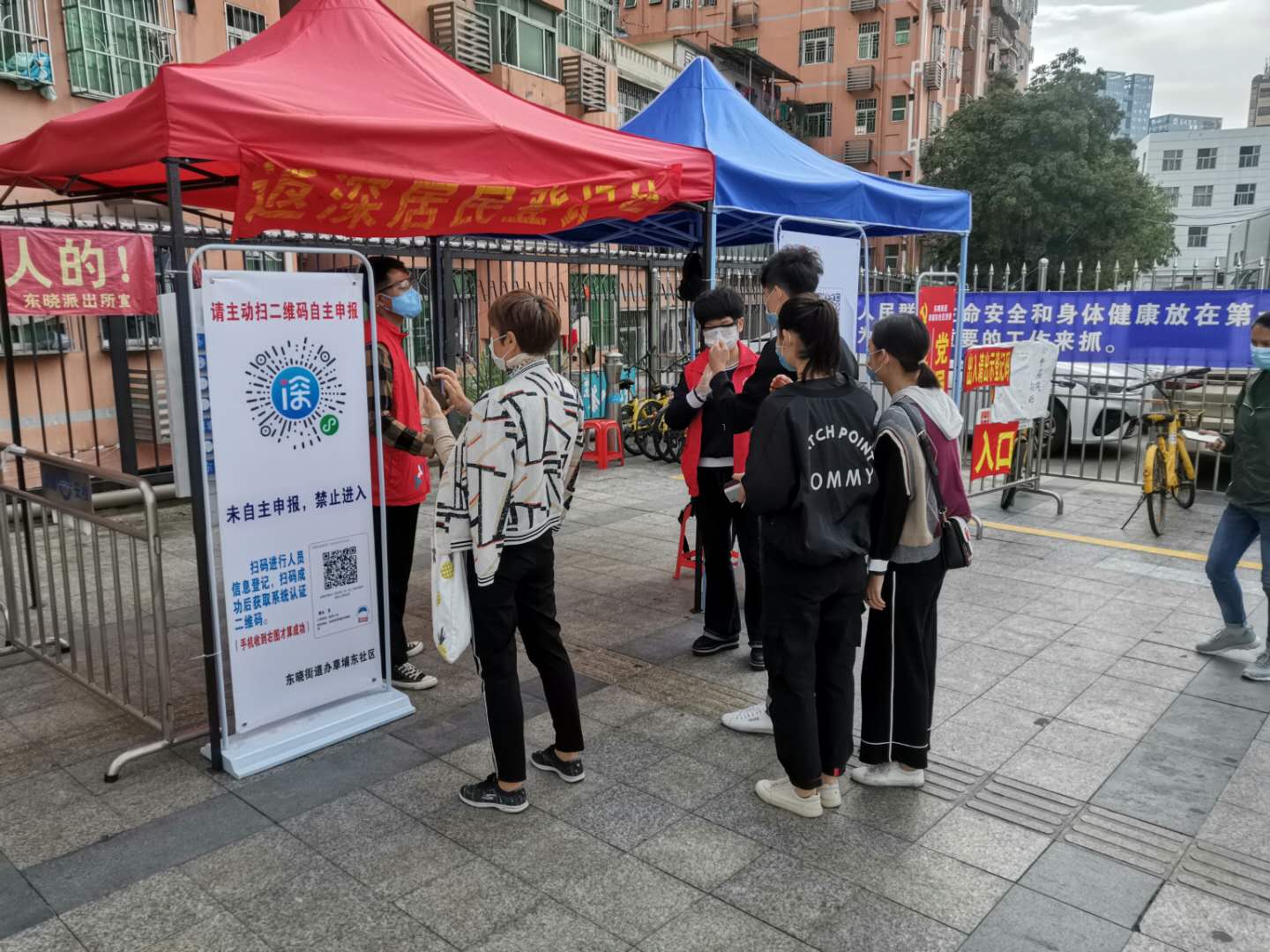 社區(qū)門(mén)口的卡點(diǎn)防控是最繁瑣,也是最辛苦的工作之一,每天重復(fù)著相同的工作,但這也是最重要的工作之一。銀湖、梧桐山、花場(chǎng)、東曉、草埔東社區(qū)繼續(xù)做好返深人員信息登記,掃碼核查返深人員近14天行程測(cè)量體溫,檢查出入二維碼或出入證并引導(dǎo)未申人員自主申報(bào)“深i您”信息,并做好疫情防控宣傳工作。