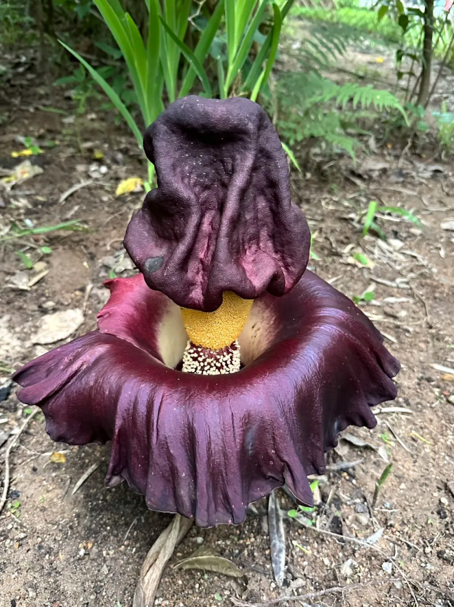 五月,我們在物候平臺驚喜地發(fā)現(xiàn) 4位創(chuàng)作者記錄到了疣柄魔芋的盛放,許多花友紛紛前往福田紅樹林生態(tài)公園打卡。福田紅樹林的疣柄魔芋是由前工作人員二姑娘從外面撿拾并栽種的,在公園的精心呵護(hù)下于2020年首次開花。自此,每年五月公園的疣柄魔芋都會如期綻放,也引得無數(shù)花友前來一睹芳容。