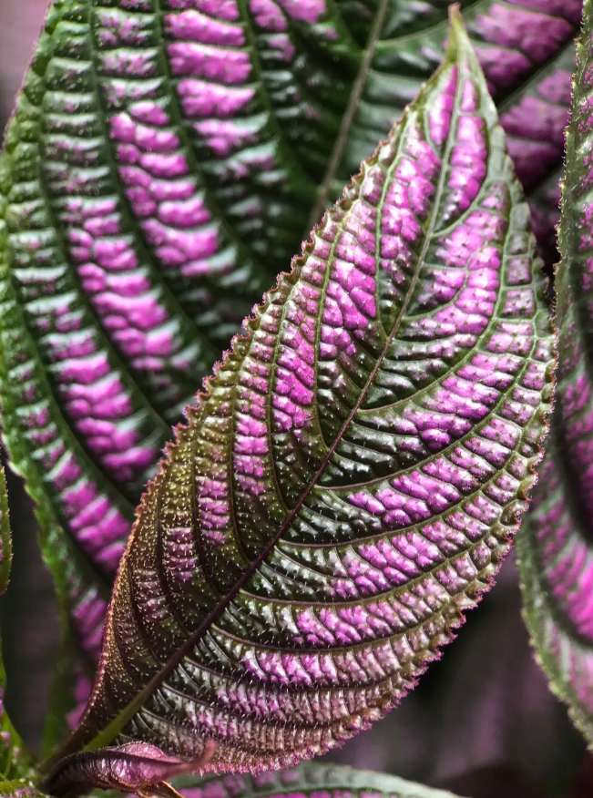 紅背耳葉馬藍(lán),觀葉植物。因葉子背面為紅色,葉子基部像耳朵,植物學(xué)分類中屬于馬藍(lán)屬而得名。