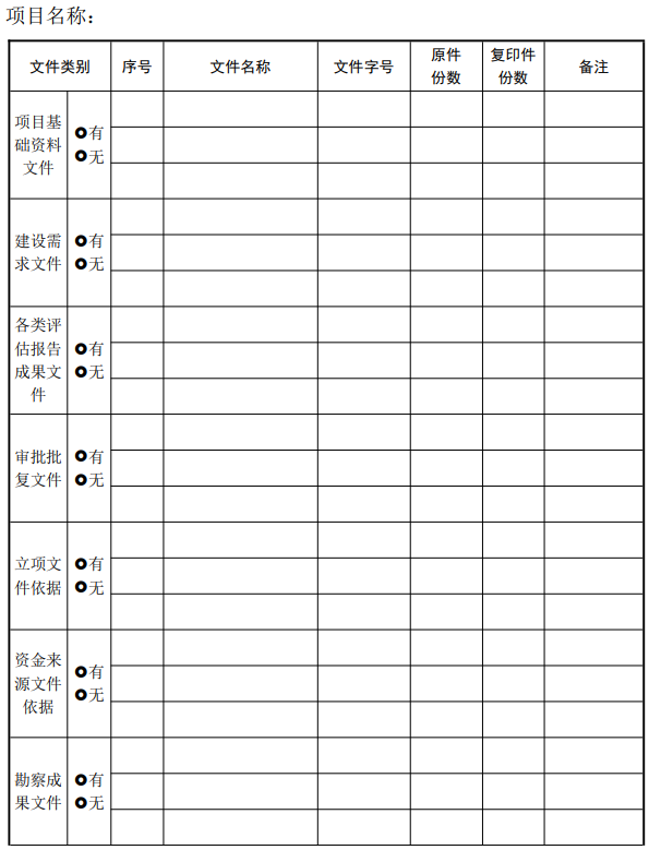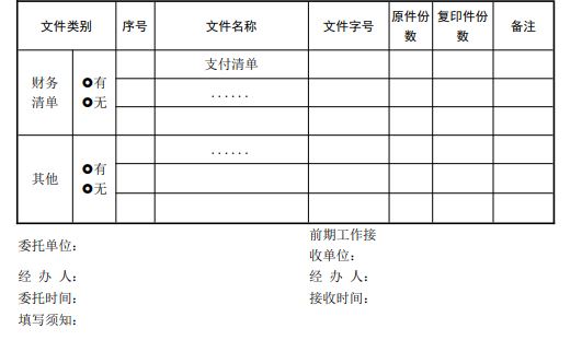 填寫須知: | 1、本資料清單僅作為資料交接,正式移交時間以簽訂《項目移交協(xié)議書》時間為準。 2、本資料清單可根據項目性質進行調整。 | ||||||||||